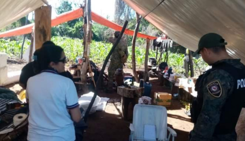 Entre las evidencias incautadas, mencionan dos teléfonos celulares, bolsas arpilleras, una mochila pulverizadora, insecticidas, semillas de marihuana, un motor fuera de borda de 2 Hp y un generador de 1300 Watt.