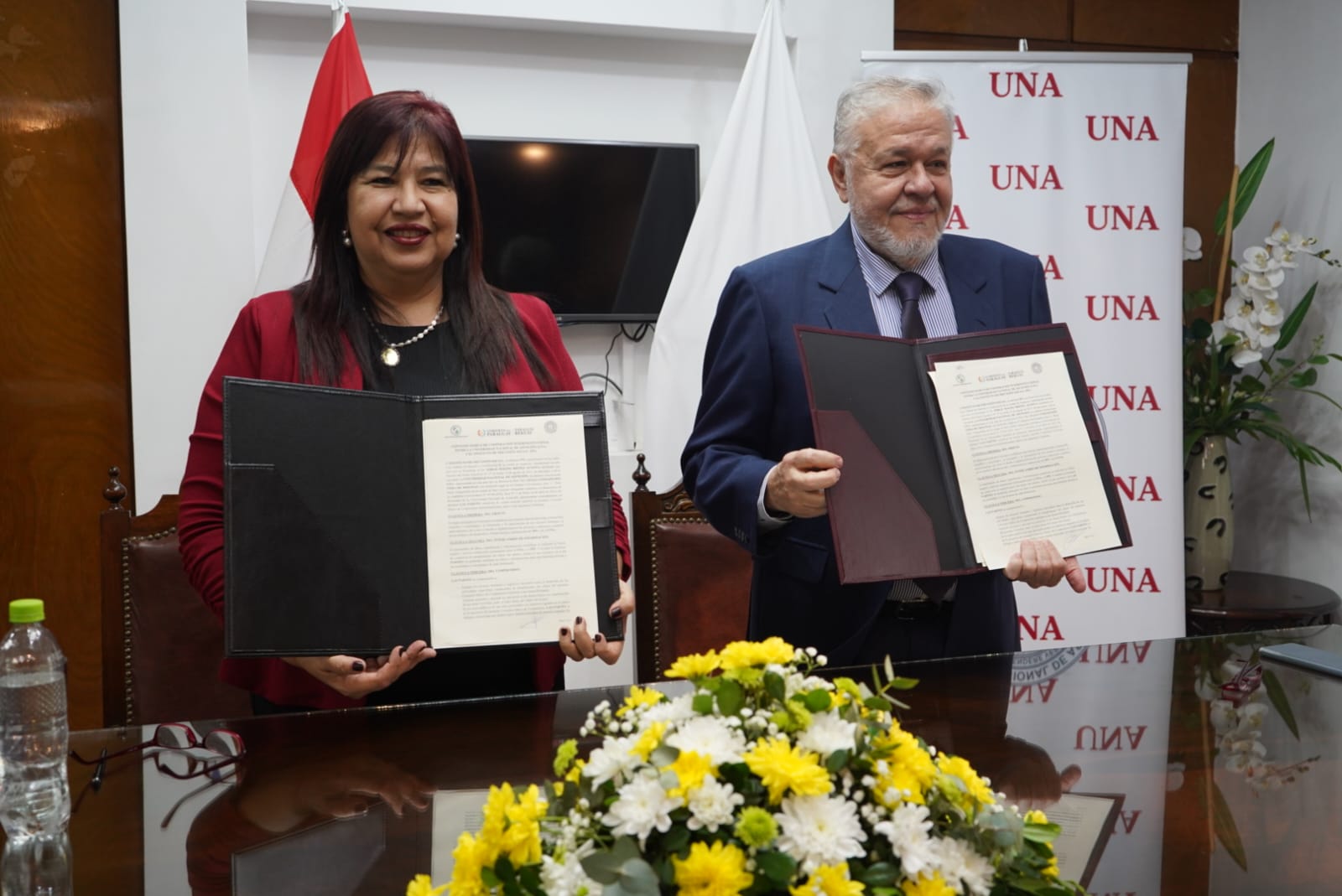 La Prof. Dra. Zully Concepción Vera, rectora de la UNA, destacó por su parte la importancia del convenio. “Es muy importante porque a partir de este convenio podremos ver que más estudiantes de diferentes áreas puedan realizar pasantías y apoyos, y en este caso actividades referentes a tesis, atendiendo a que la generación de conocimientos de las instituciones nos ayuda a tomar mejores decisiones,” resaltó Vera.