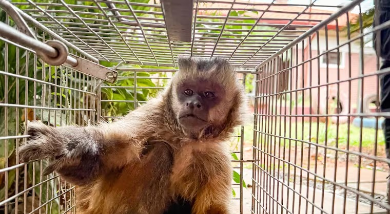 Técnicos del MADES capturaron un mono capuchino en el barrio San Rafael de Loma Pytã, tras días de denuncias vecinales y un ataque el fin de semana a un niño de 3 años, que resultó mordido en el brazo con lesiones graves.